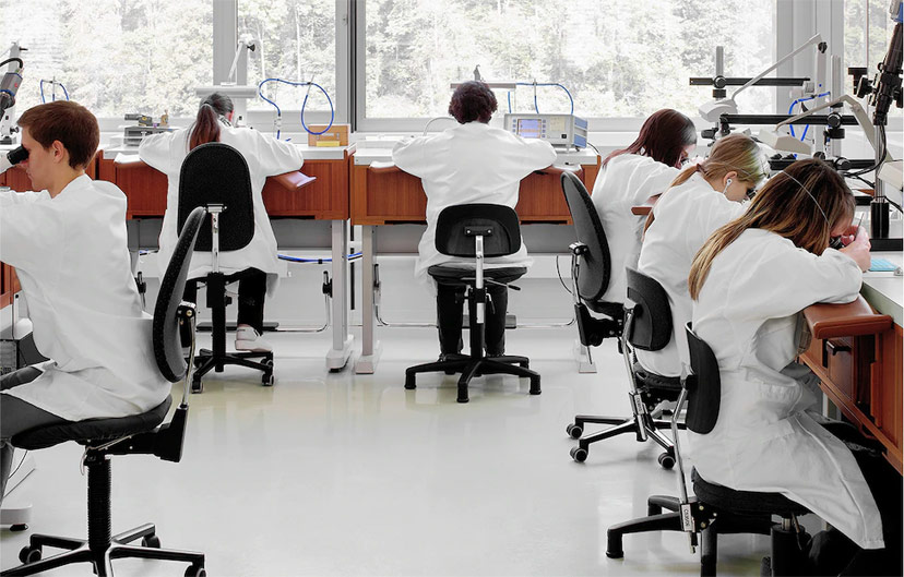 廣州雷達(dá)維修專家們身著白色制服,在配備專業(yè)儀器的工作崗位上凝神靜氣,一心專注于眼前的工作。廣州雷達(dá)工坊的工作氛圍講求寧?kù)o致遠(yuǎn),全心投入創(chuàng)造卓越品質(zhì)。廣州雷達(dá)的專業(yè)表匠均具備廣泛技能與專業(yè)學(xué)識(shí),只為精準(zhǔn)無誤且持續(xù)耐久的機(jī)械時(shí)計(jì)。他們是廣州雷達(dá)腕表走時(shí)精準(zhǔn)、品質(zhì)斐然的保障,也是品牌時(shí)計(jì)卓著聲譽(yù)的幕后功臣。